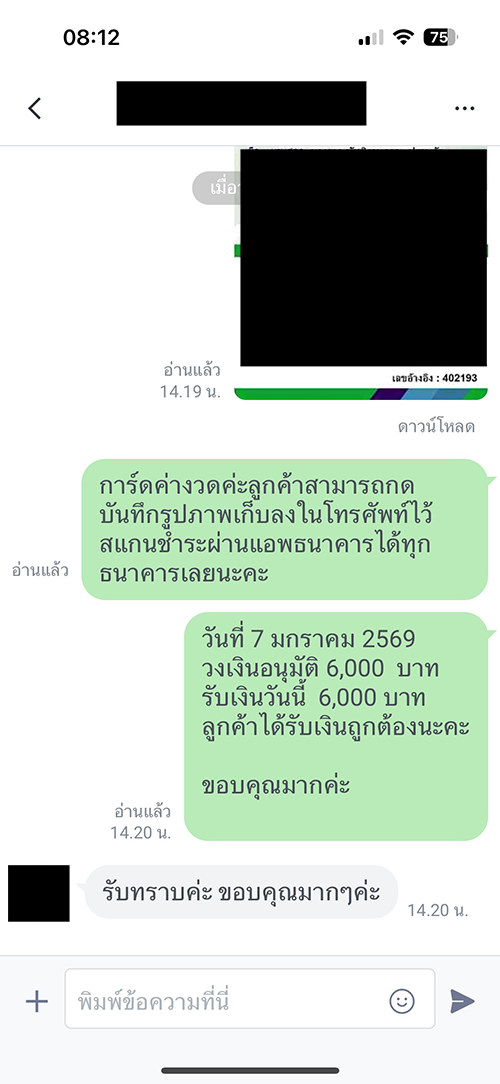 ลูกค้าสามารถนัดวันชำระค่างวดที่สะดวกได้เองทางไลน์อัตโนมัติของบริษัท โดยไม่ต้องเสียเวลาโทรซ้ำ