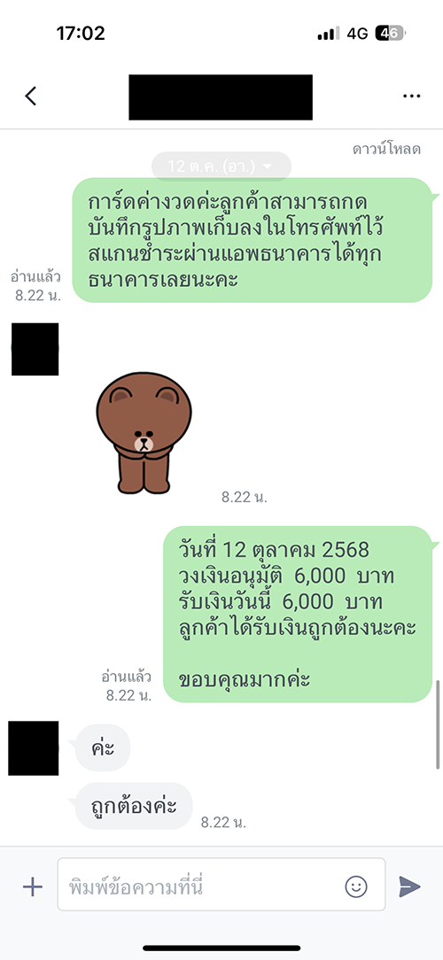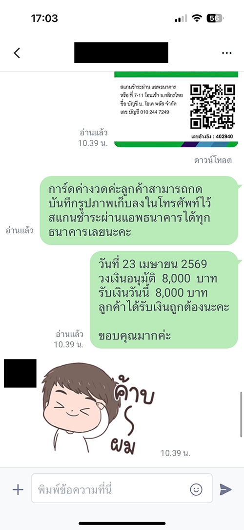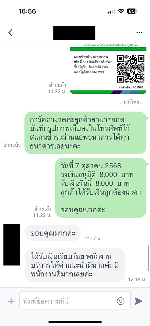 ลูกค้าสามารถนัดวันชำระค่างวดที่สะดวกได้เองทางไลน์อัตโนมัติของบริษัท โดยไม่ต้องเสียเวลาโทรซ้ำ